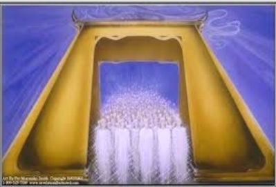 Ahora Juan ve a cuatro ángeles de pie en los cuatro extremos de la tierra. Estos sujetan los vientos y dicen que ningún viento puede soplar sobre la tierra hasta que los 144 000 hayan sido sellados. 12 000 de cada tribu de los israelitas. A continuación, ve una gran multitud que ha lavado sus vestiduras en la sangre de Jesús. Sirven en el templo de Dios día y noche.