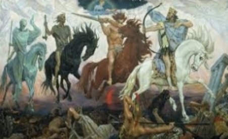 En el segundo sello aparece un caballo rojo, cuyo jinete quita la paz de la tierra.