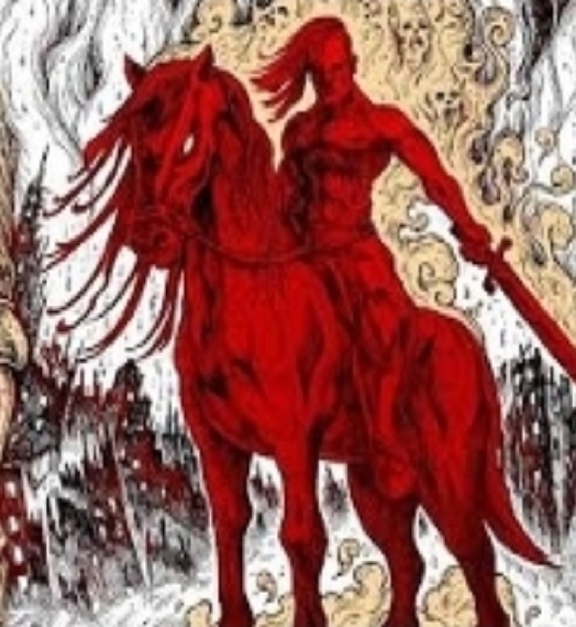Apo.6:3 Cuando el Cordero rompió el segundo sello, el segundo ser viviente gritó: «¡Ven!». 4 Esta vez apareció un caballo rojo. El jinete recibió una gran espada y autorización para acabar con la paz en la tierra y hacer que por todas partes hubiera guerras y muertes.